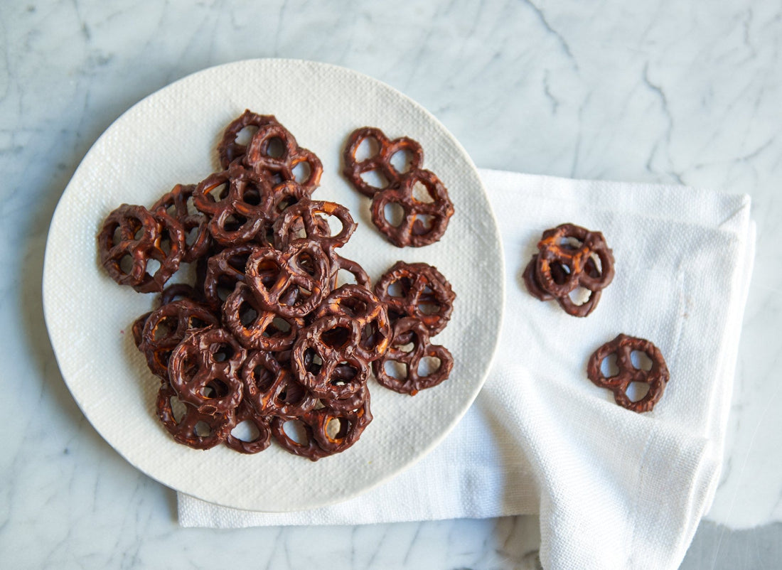 - Para preparar pretzels individuales cubiertos, colóquelos en una sola capa. Si los deja en un montículo o en varias capas, deberá partirlos en trozos.