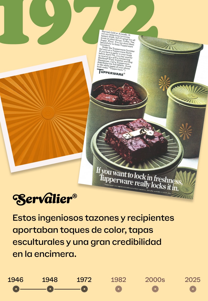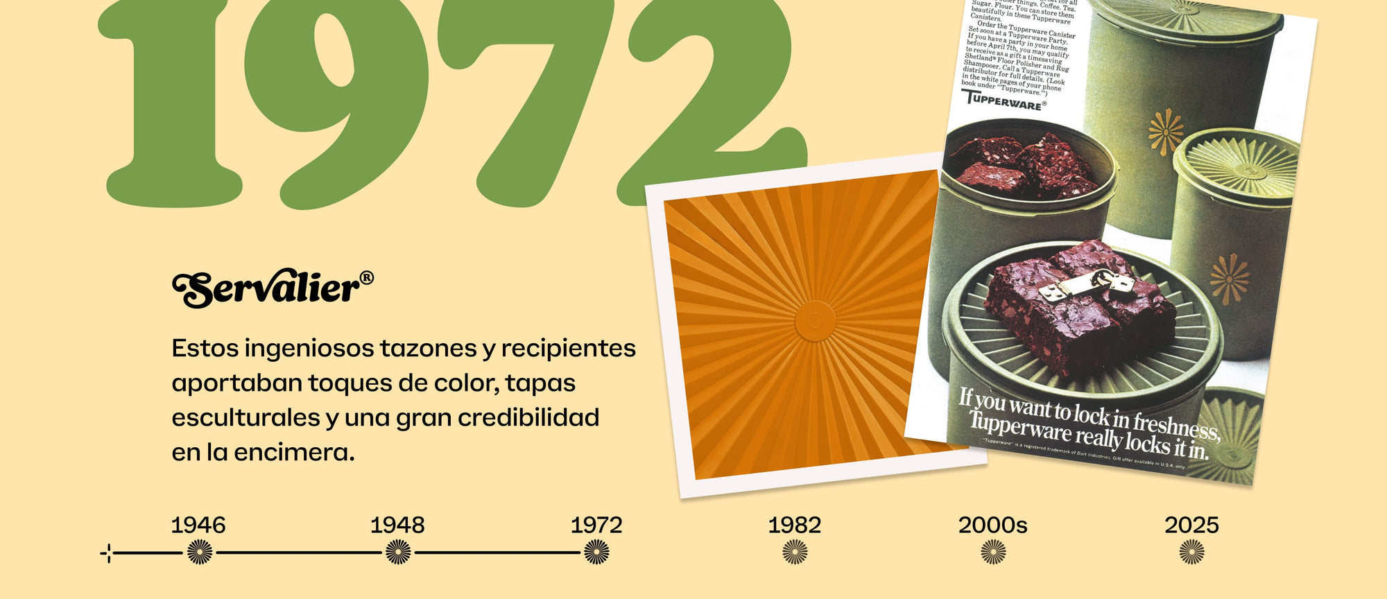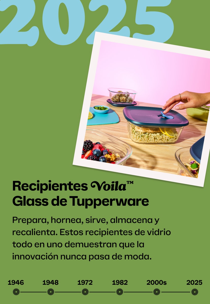 Durante ocho décadas, Tupperware® ha conservado la frescura, ha combatido el desperdicio de comida y ha servido con elegancia: una idea inteligente tras otra. Lo que comenzó en 1946 con un tazón se convirtió en un icono cultural que se creó pensando en la innovación, el color y la conexión.