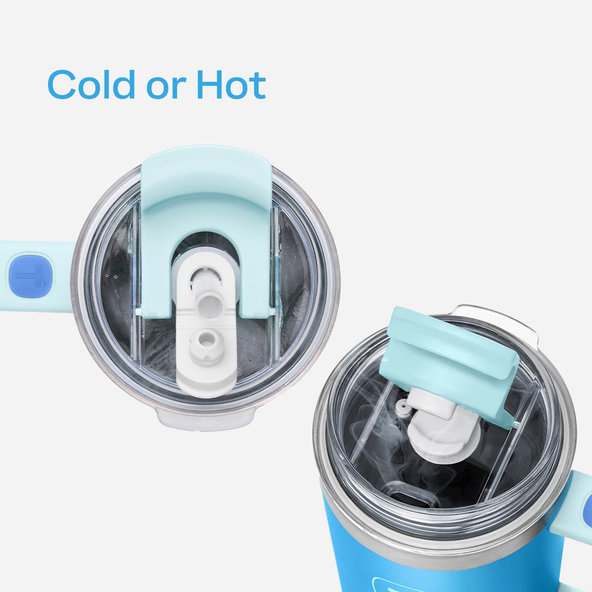 - Con popote/pajilla o con la boquilla: Para las bebidas frías, saca el popote/pajilla de la tapa 2 en 1. Para las bebidas calientes, voltea la tapa para beber de la boquilla.