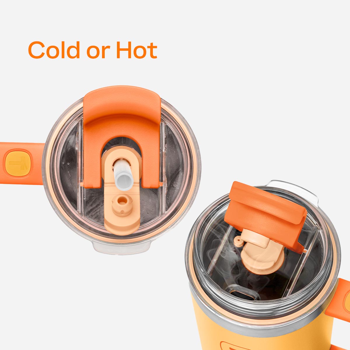 - Con popote/pajilla o con la boquilla: Para las bebidas frías, saca el popote/pajilla de la tapa 2 en 1. Para las bebidas calientes, voltea la tapa para beber de la boquilla.