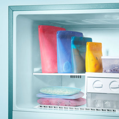 Nuestras Bolsas de Silicona Supremas Slim son tu solución integral para un almacenamiento versátil y ecológico en tres opciones de tamaño perfecto: 1¼ tazas / 300 ml, 1 cuarto / 980 ml y 1¾ cuartos / 1.6L. Estas bolsas lo cambian todo y están listas para transformar la forma en la que almacenas, preservas y llevas tus artículos esenciales.