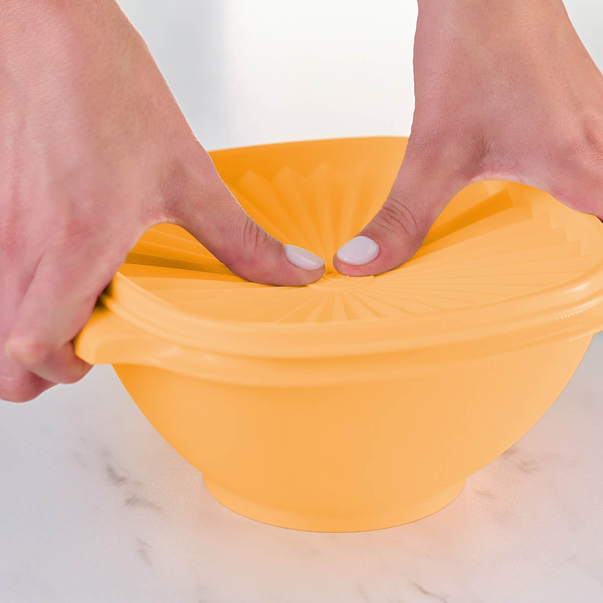 Tupperware® Servalier® Bowls and Canisters transport our time-tested design into the modern kitchen with this huge set in fresh colors! It's the perfect blend of innovation and convenience for your kitchen storage needs. Whether you're prepping ingredients, storing leftovers, or packing lunch, Servalier® bowls ensure durability and easy access to your food with their stackable and space-saving design. Plus, tapered handles provide a secure, comfortable grip when carrying the bowls.