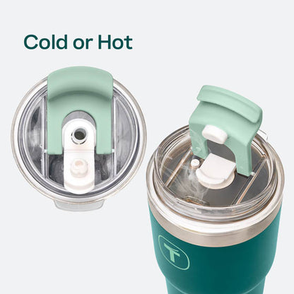 - Straw in or spout open: For cold drinks, pop the straw in the 2-in-1 lid. For hot beverages, flip the lid to sip from the spout.