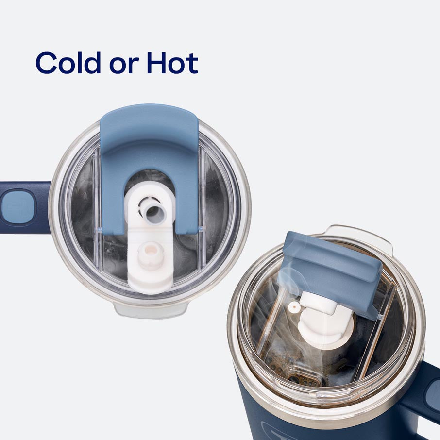 - Straw in or spout open: For cold drinks, pop the straw in the 2-in-1 lid. For hot beverages, flip the lid to sip from the spout.